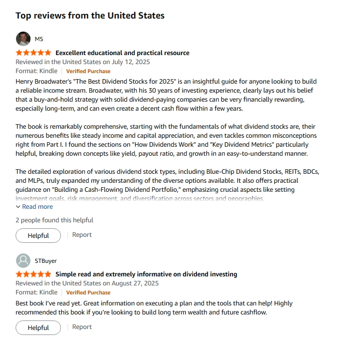 Reviews for "The Best Dividend Stocks for 2025" from Amazon: